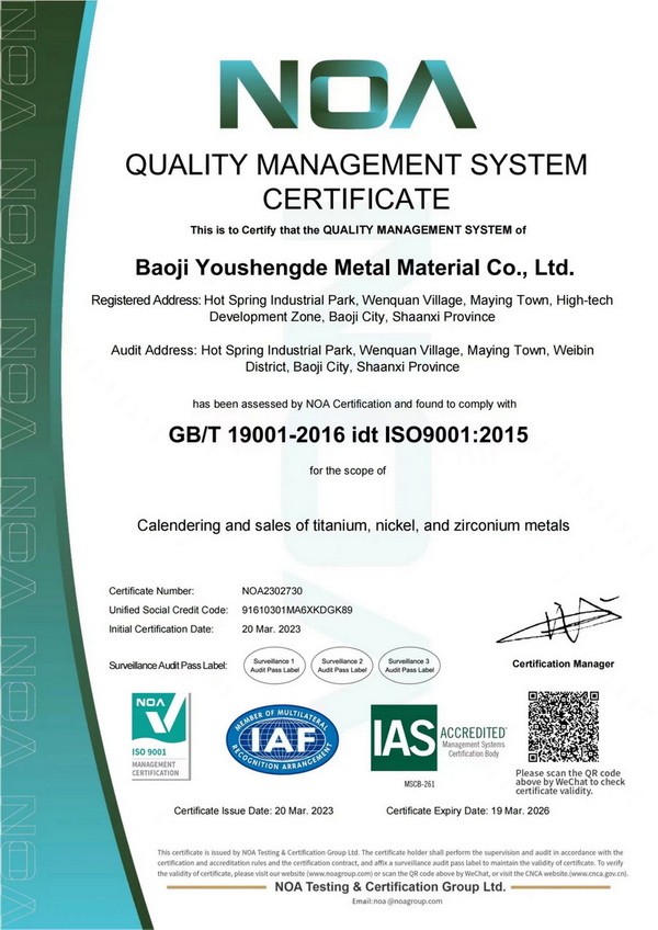 寶雞騰博tengbo9885官網(wǎng)金屬材料有限公司地處“中國(guó)鈦谷” ——陜西省寶雞市高新技術(shù)開(kāi)發(fā)區(qū),現(xiàn)有專(zhuān)業(yè)生產(chǎn)技術(shù)人員50余人,公司通過(guò)了ISO9001:2015質(zhì)量管理體系。
